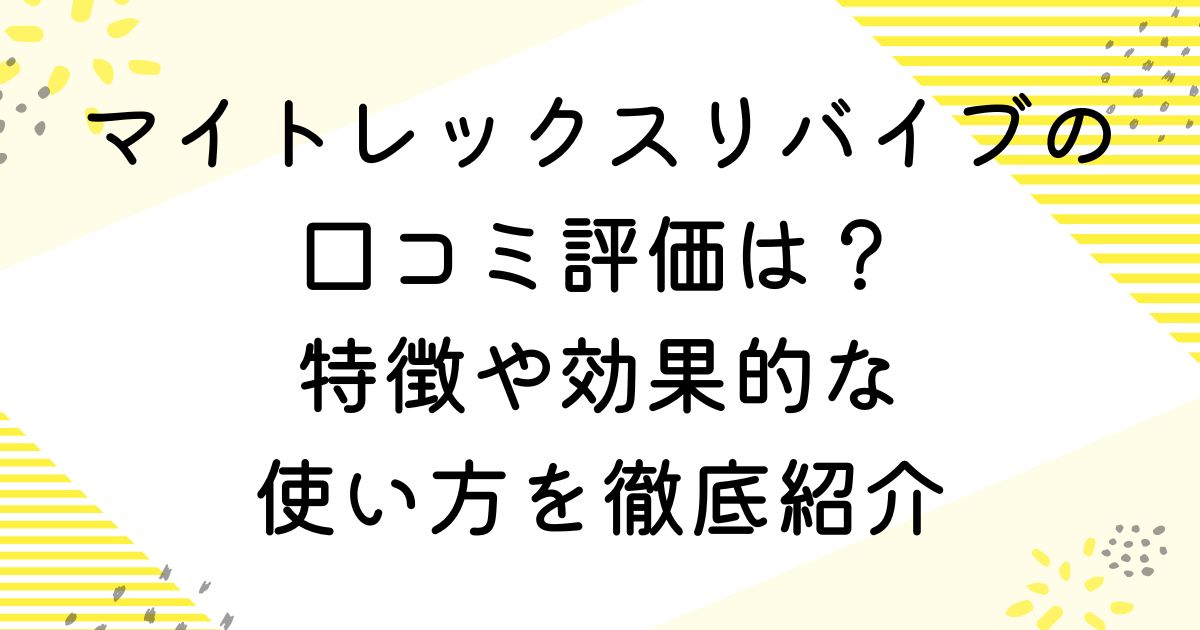 マイトレックスリバイブの口コミ評価と特徴や効果的な使い方をご紹介します。